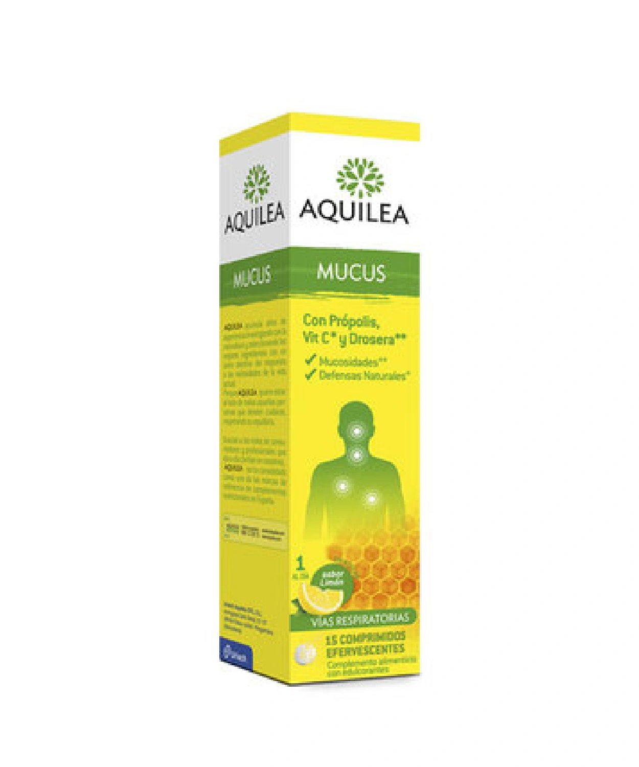 Aquilea Mucus contiene Bromelina, N-Acetilcisteína, própolis, vitamina C y Drosera.