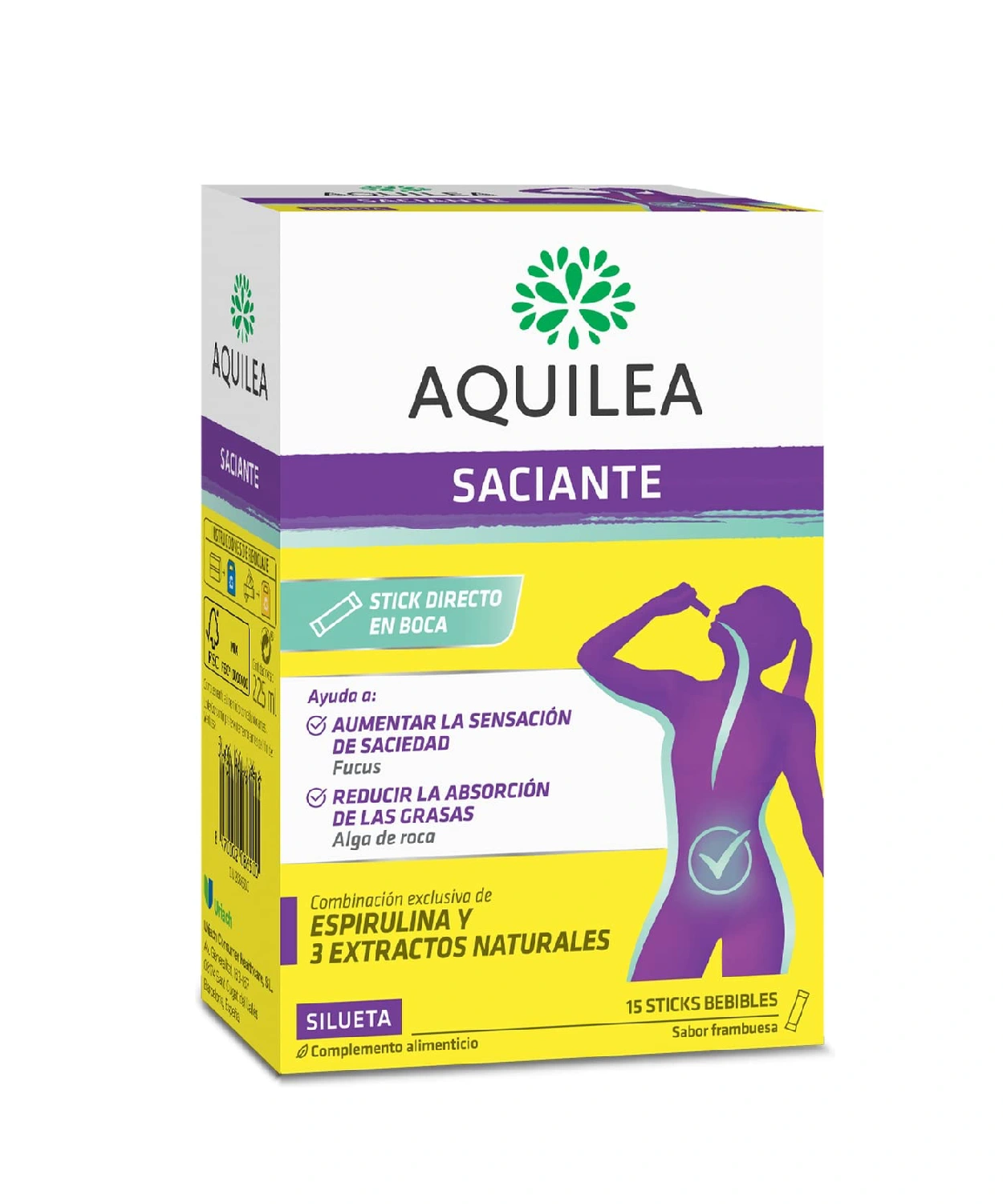 Aquilea Saciante con una combinación exclusiva de Espirulina y 3 extractos naturales que, junto a una dieta sana y equilibrada, ayuda a aumentar la sensación de saciedad, controlar el peso y reducir la absorción de grasas.