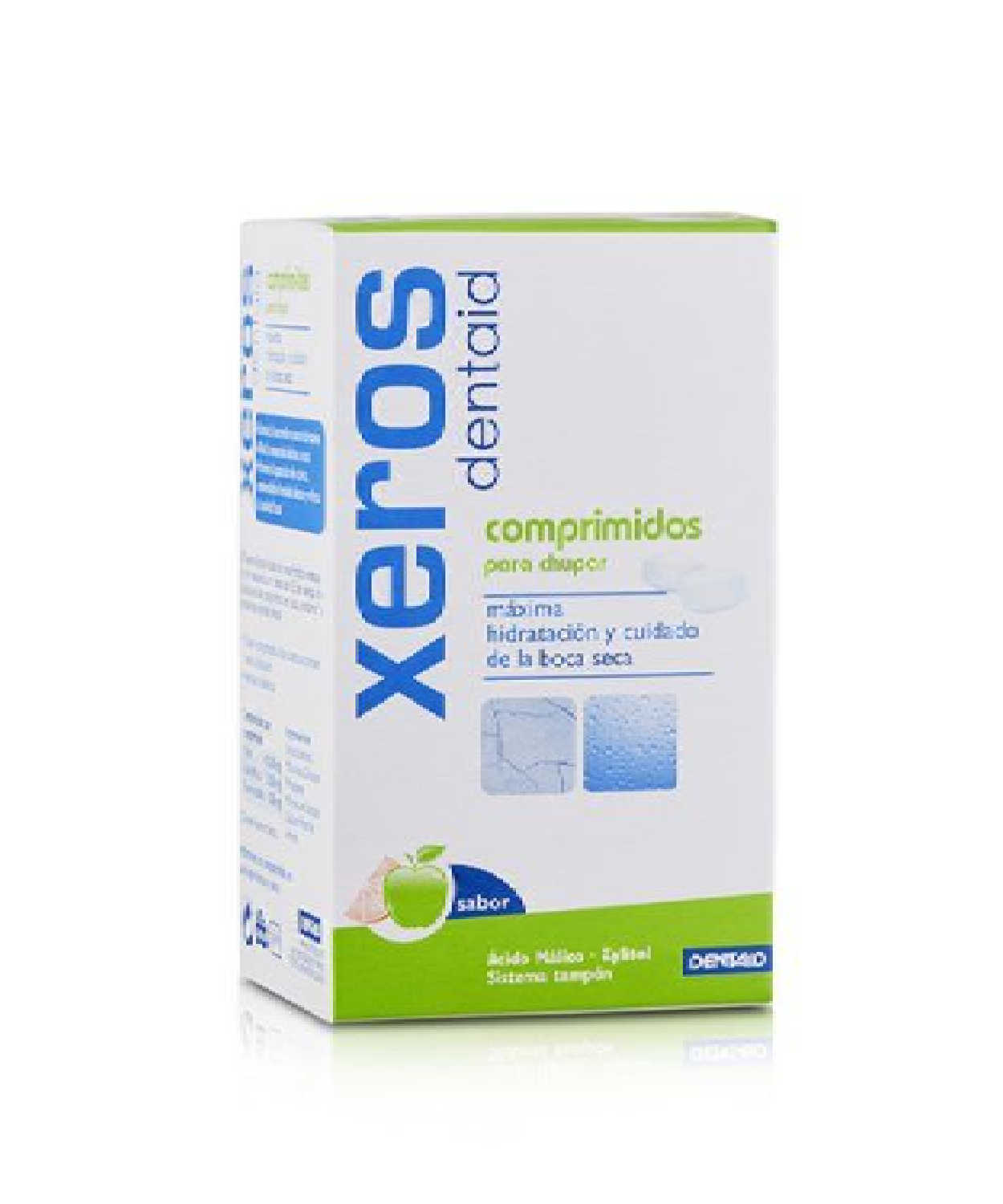 Tras una correcta hidratación de la cavidad bucal mediante pasta, colutorio y/o gel, Xeros dentaid® comprimidos alivian la sensación de boca seca gracias a su composición a base de ácido málico, xylitol y fluoruro sódico, a la vez que estimulan la producción natural de saliva, previenen la aparición de caries, remineralizan el esmalte dental y refrescan la cavidad bucal.