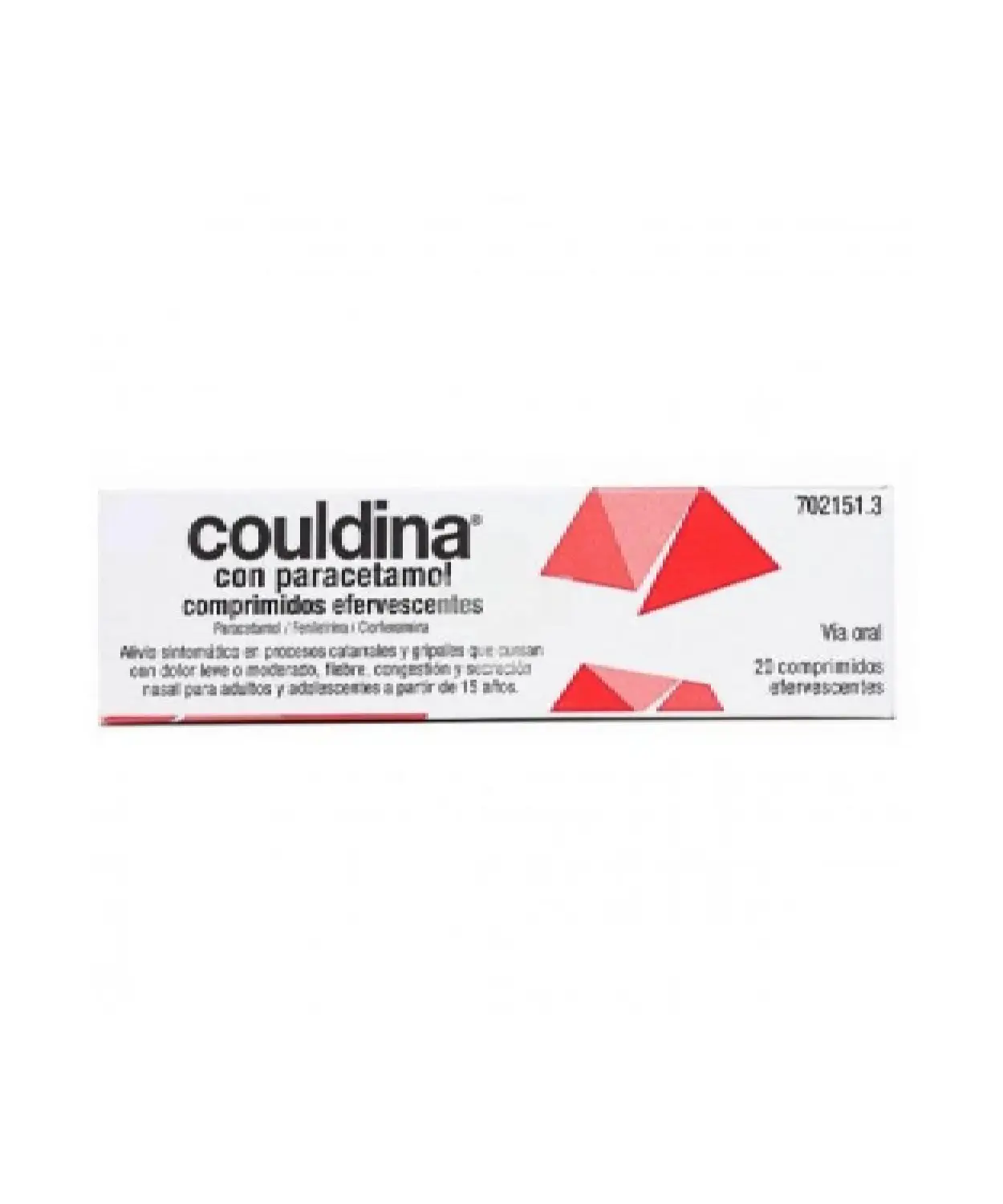 Couldina con Paracetamol, identificado por su distintivo rojo, está indicado en adultos y adolescentes a partir de 15 años para el alivio sintomático de procesos catarrales y gripales que cursan con fiebre, dolor de cabeza, malestar general, congestión nasal y goteo nasal.