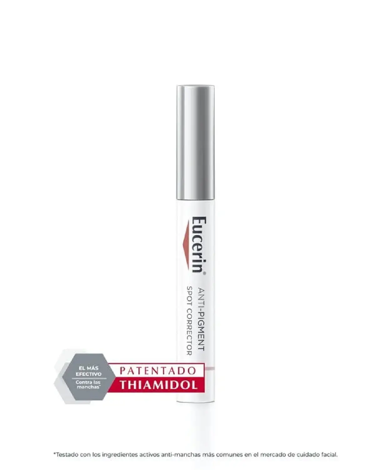 Eucerin® Anti-Pigment Corrector de manchas es un gel no graso con un aplicador de uso tópico que facilita la aplicación precisa en zonas pequeñas con hiperpigmentación.