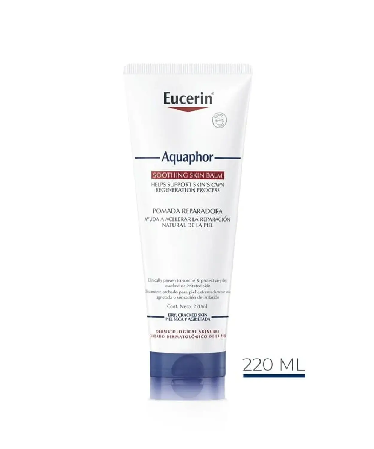 Eucerin Aquaphor Pomada Reparadora tiene una capacidad, clínicamente comprobada, para acelerar la regeneración de la piel con el fin de colaborar en la curación de situaciones de extrema sequedad, piel dañada o irritada.