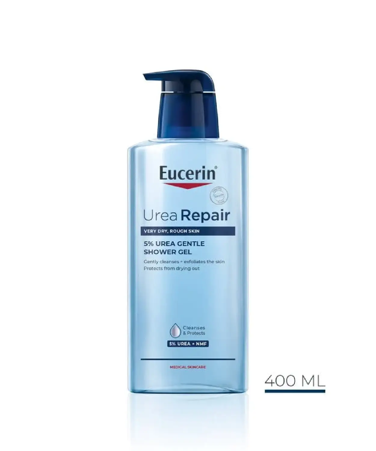Eucerin UreaRepair 5 % Urea Gel de Baño Suave es un limpiador suave para rostro y cuerpo sin jabón ni perfume especialmente formulado para el uso diario en pieles muy secas, ásperas e irritables.