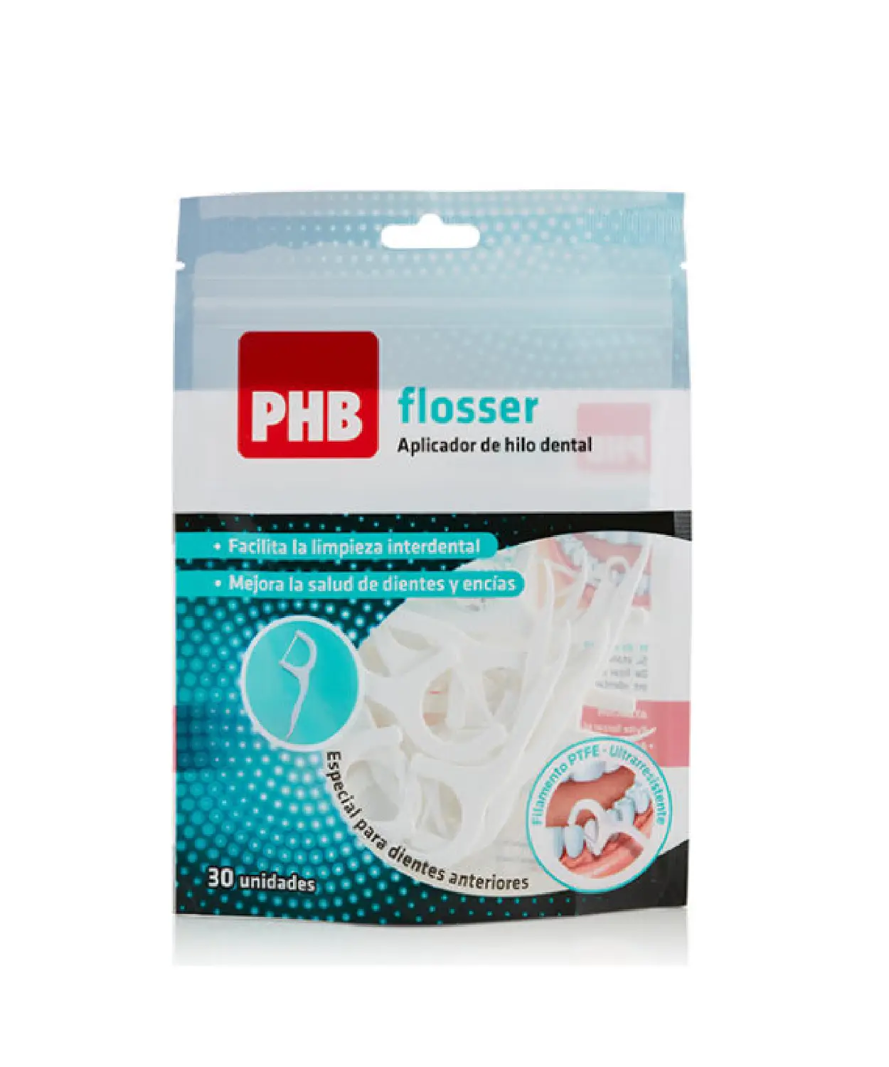 PHB Flosser es un aplicador de hilo dental que facilita la limpieza interdental y mejora la salud de dientes y encías. PHB flosser ha sido diseñado para proporcionar una limpieza más efectiva de los espacios interdentales que el cepillado no puede eliminar