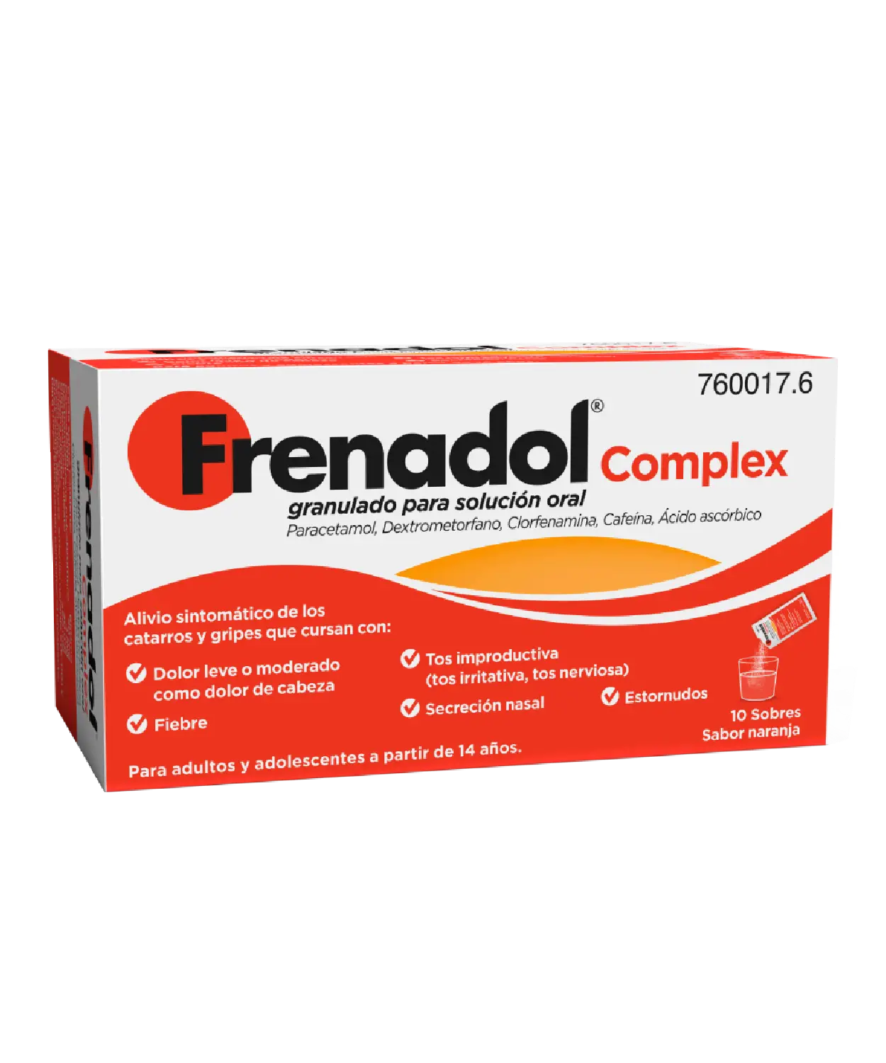 Frenadol® Complex está indicado para el tratamiento sintomático de gripes y catarros que cursan con fiebre, dolor leve o moderado (como dolor de cabeza), tos improductiva —tanto irritativa como nerviosa— y secreción nasal.