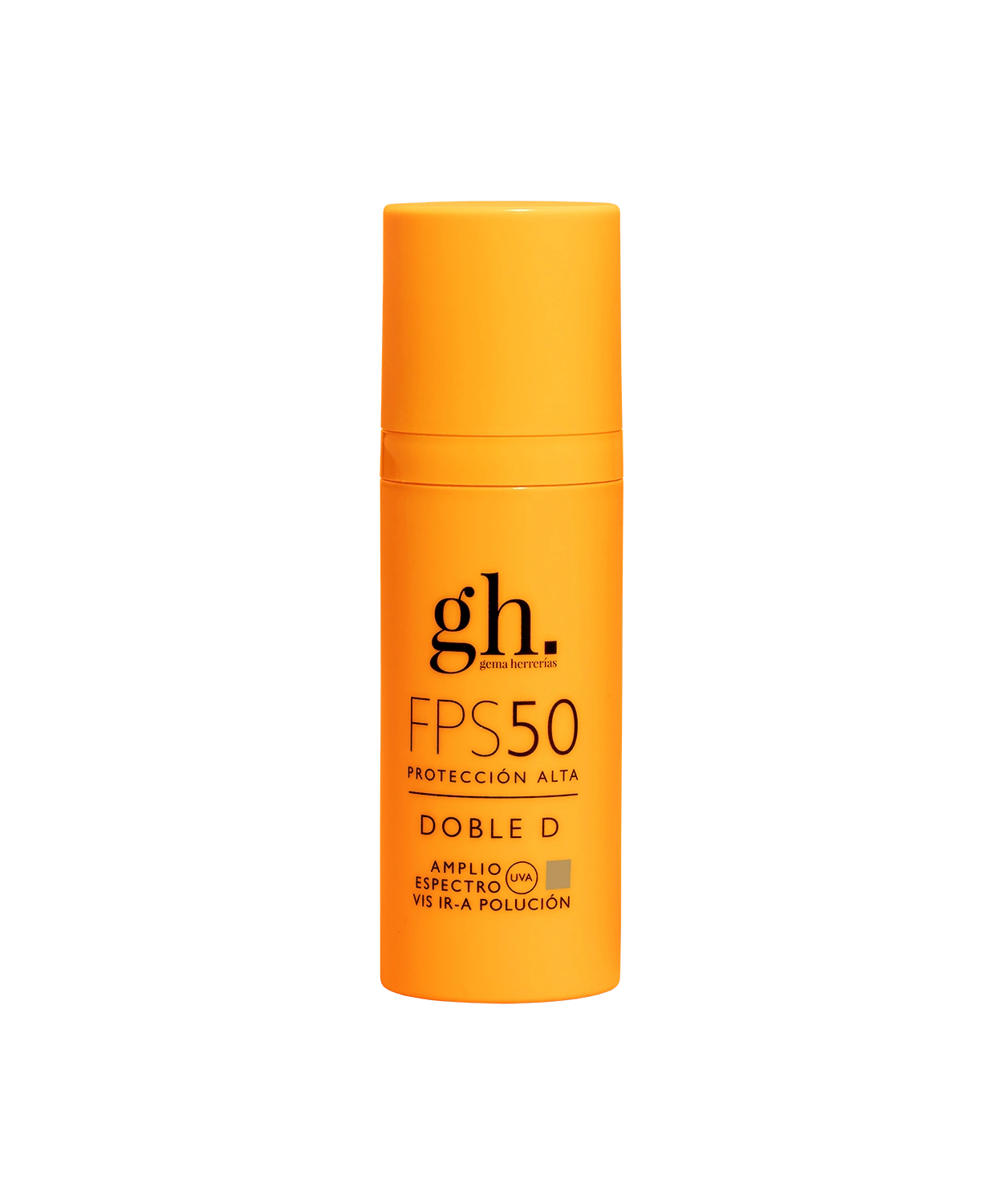 gh Doble D FPS50 MANUELA protección alta es el nuevo protector solar de gh de color dorado. Un fluido ultra ligero de defensa diaria urbana con acabado no graso.