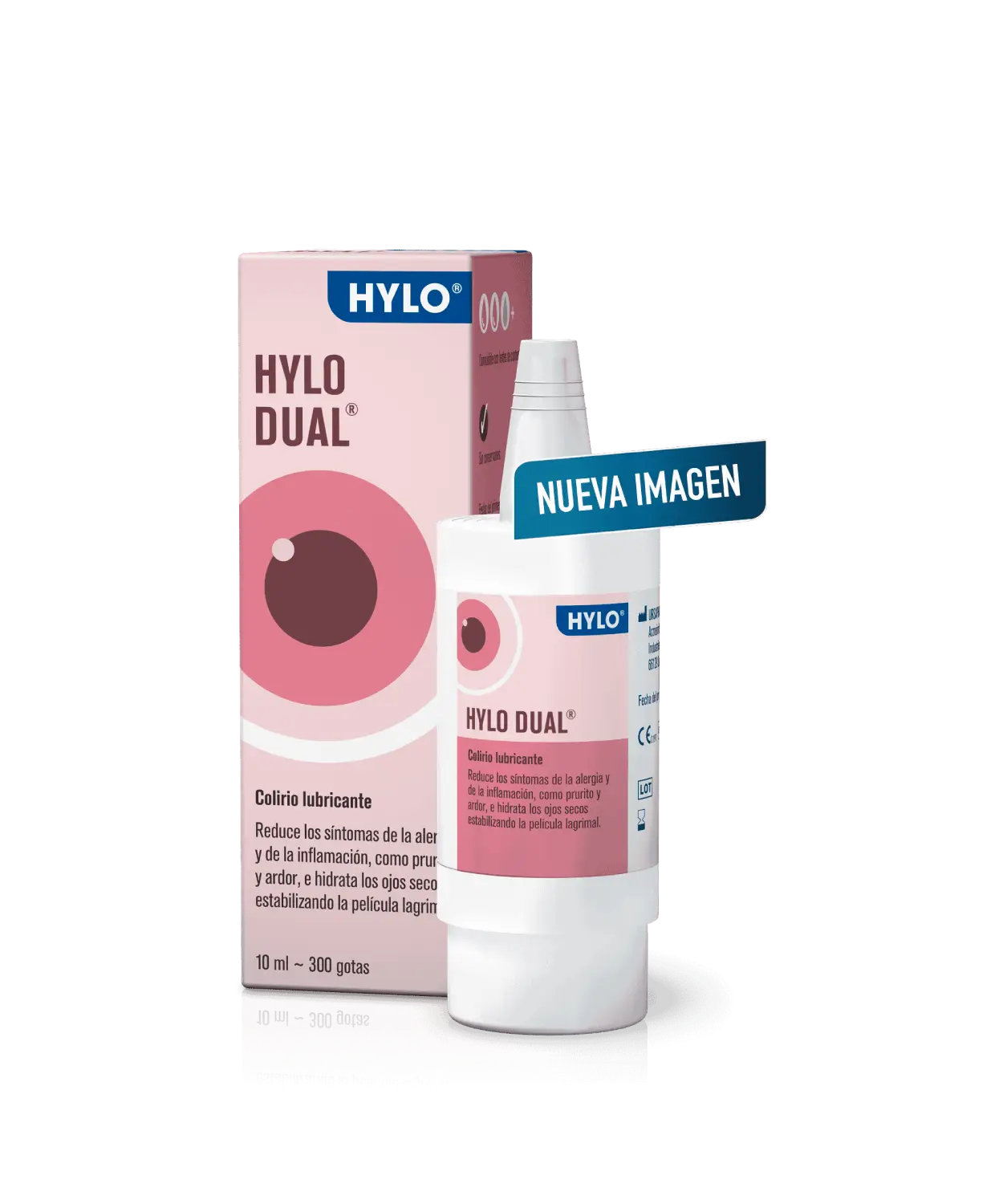 HYLO DUAL® colirio con hialuronato de sodio 0,5 mg/ml y ectoína 20 mg/ml es una solución oftálmica estéril, sin conservantes y libre de fosfatos, indicada para el tratamiento del ojo seco asociado a inflamación o alergia ocular.