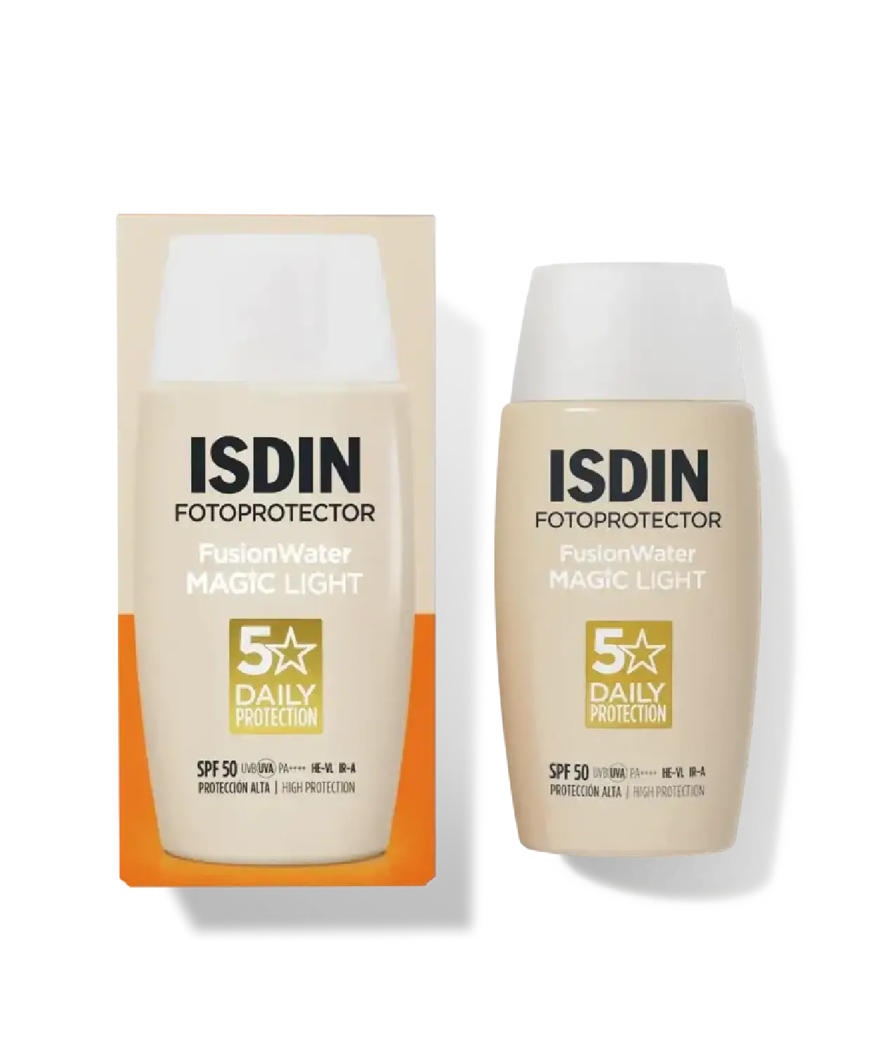 Fusion Water MAGIC Light SPF 50 es el fotoprotector facial de textura ultraligera con color que ofrece una protección Full Spectrum frente a UVB/UVA, luz azul, infrarrojo-A y polución. Su fórmula oil-free, no comedogénica y sin aceites minerales lo convierte en la opción perfecta para todo tipo de piel, incluso piel mixta o grasa.