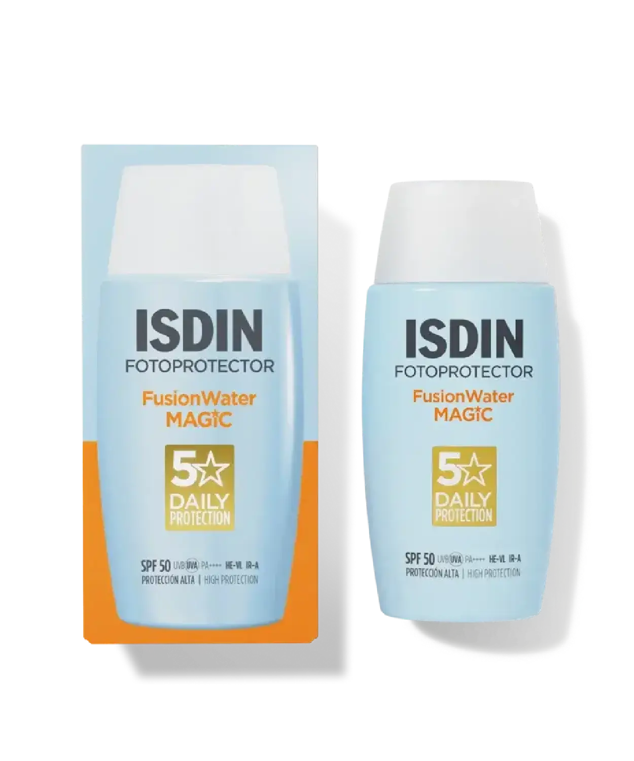 Protege tu piel con Fusion Water MAGIC SPF 50, el protector solar facial de uso diario con tecnología Water Drop Tech para una textura ultraligera y fresca de óptima absorción. Con protección Full Spectrum, protege frente a la radiación UVB/UVA, luz azul, IR-A y la polución. ¡El número 1 recomendado por dermatólogos¹!