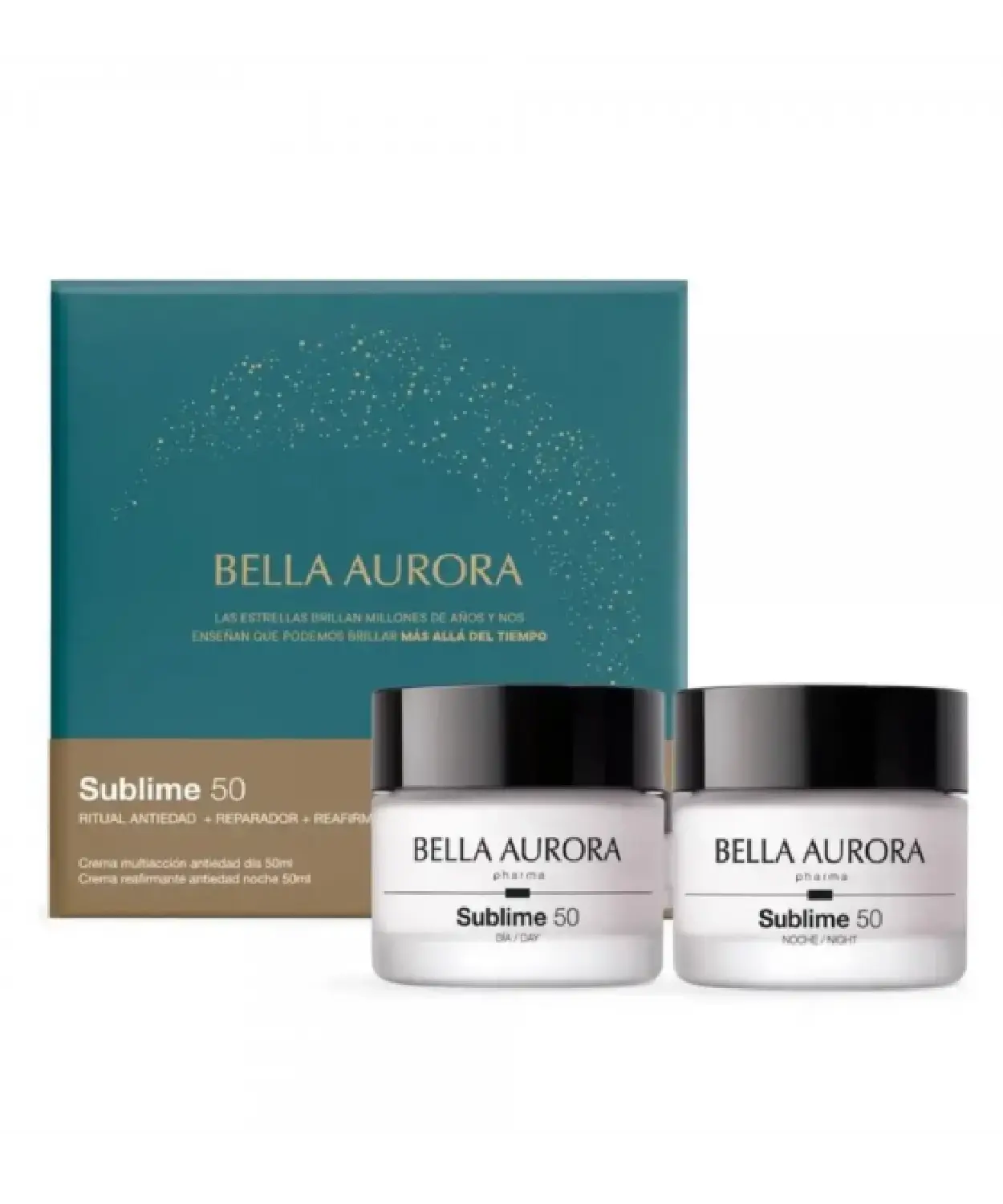 El Pack Sublime 50 Día y Noche es una solución antiedad completa diseñada para combatir los signos del envejecimiento y mejorar la calidad global de la piel.