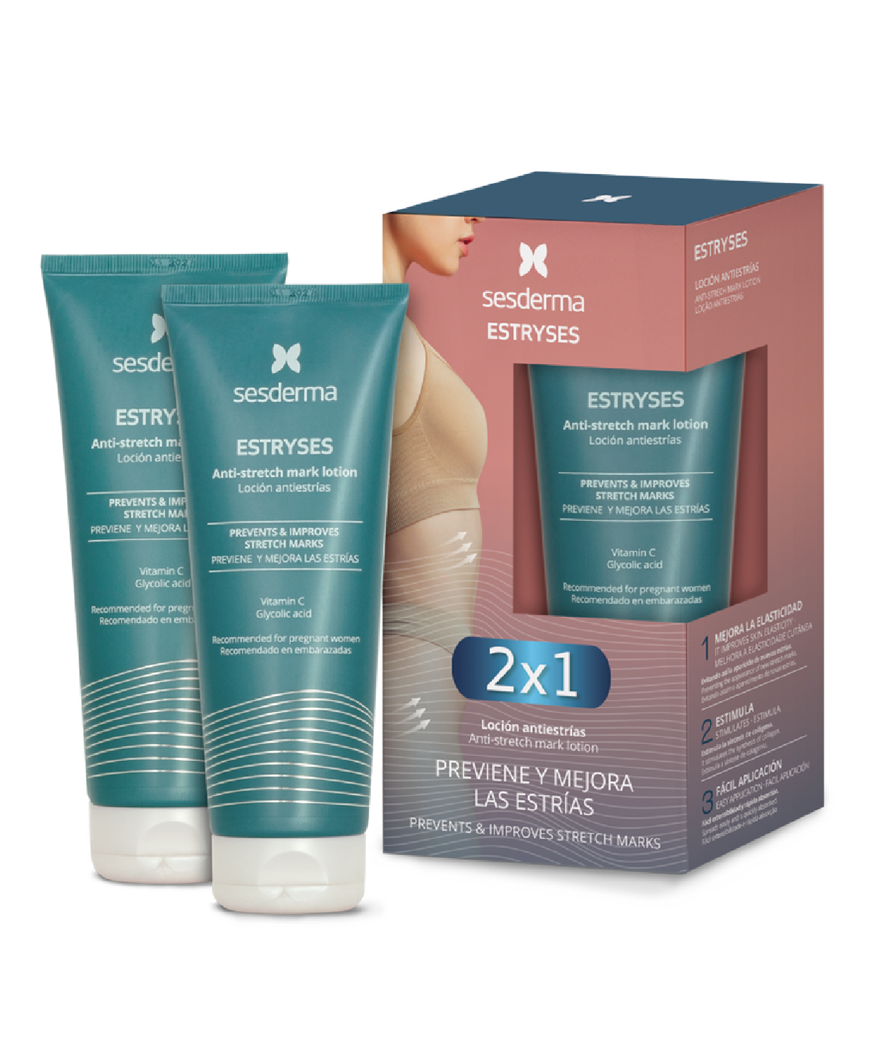 Loción antiestrías, formulado con activos liposomados para prevenir y mejorar las estrías causadas por cambios de peso, embarazo y lactancia, ahora con oferta especial de 2×1.