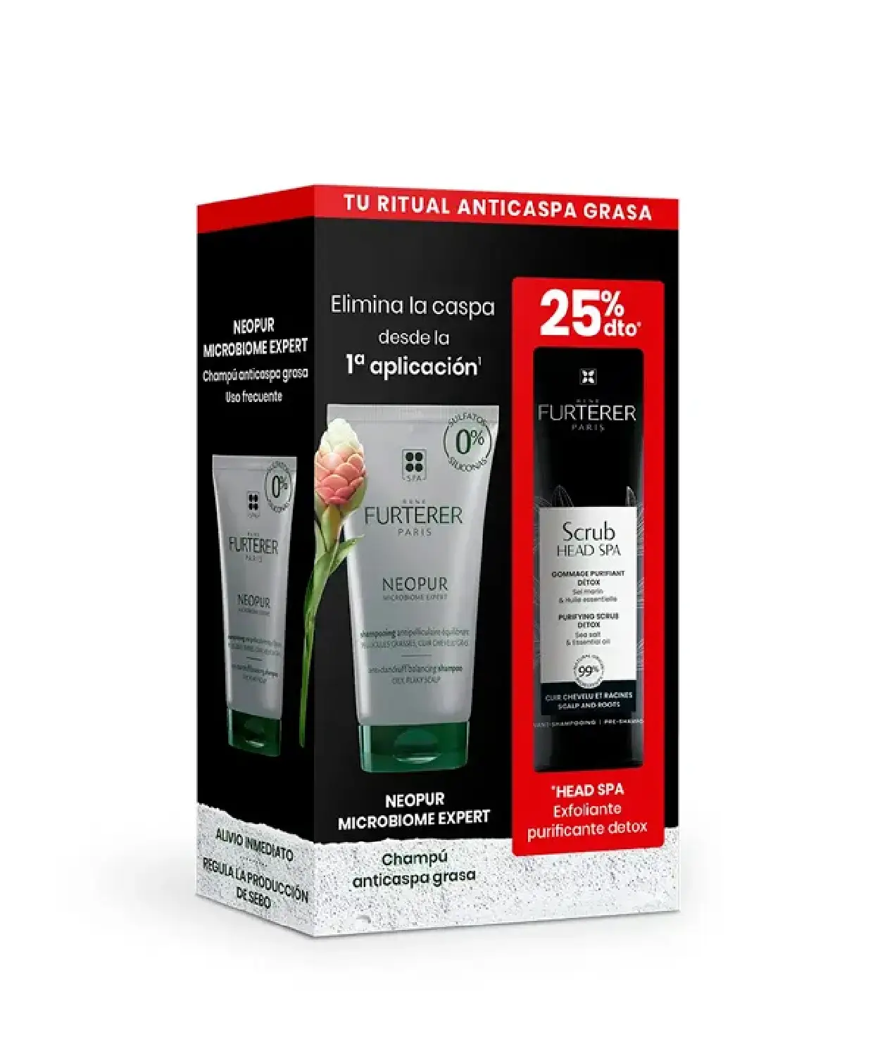 El Pack Rene Furterer Neopur Anticaspa Grasa + Exfoliante Detox es la solución integral que tu cuero cabelludo necesita.