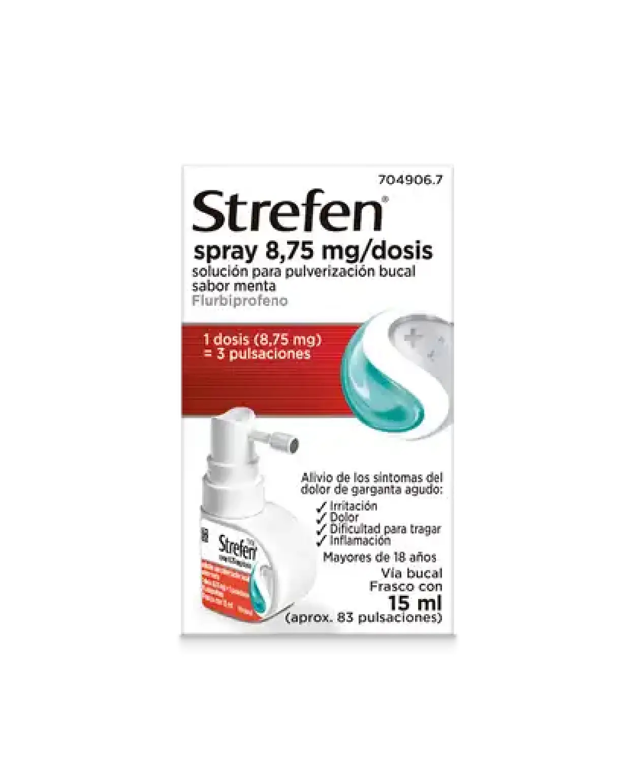 Strefen Spray 8,75 mg solución bucal sabor menta es un medicamento antiinflamatorio indicado para el alivio eficaz del dolor y la inflamación de garganta en adultos mayores de 18 años. Contiene flurbiprofeno 8,75 mg, un antiinflamatorio no esteroideo de la familia del ibuprofeno, que actúa directamente sobre la zona inflamada.