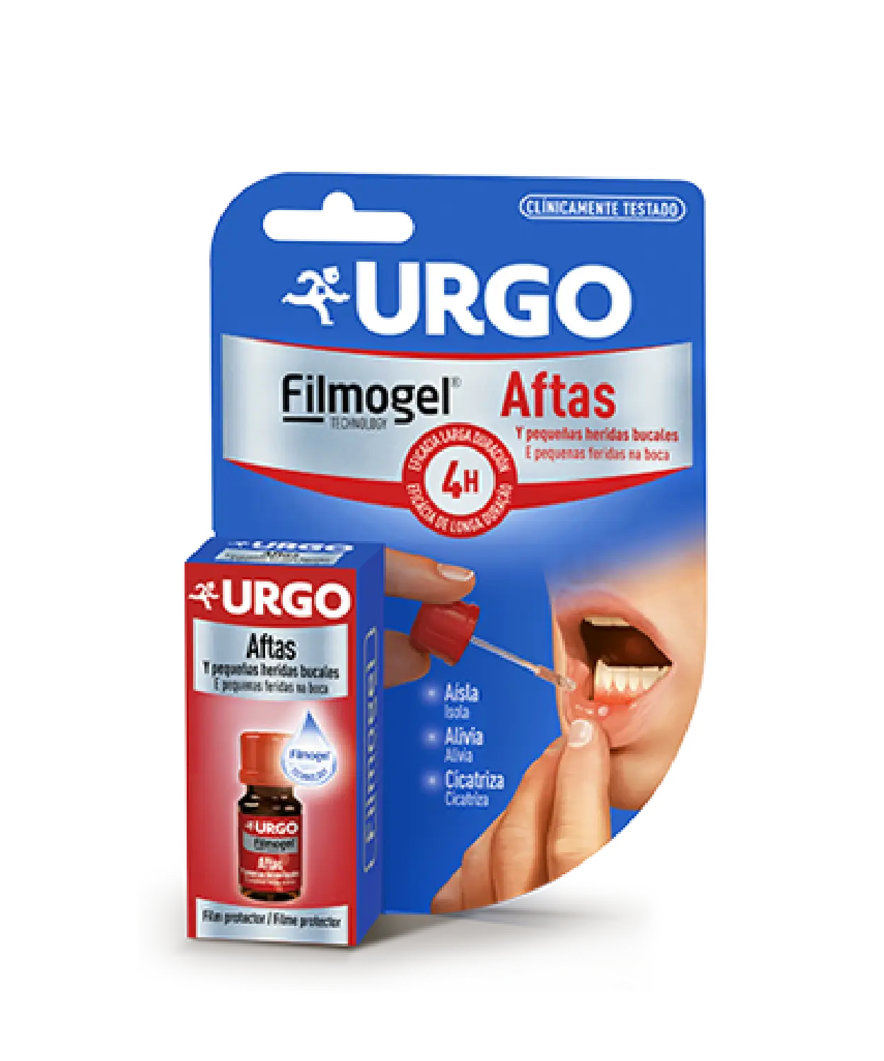 URGO Filmogel® Aftas y pequeñas heridas bucales está indicado para el tratar las aftas y pequeñas heridas bucales. Es un apósito líquido que una vez aplicado, forma un film protector fino, flexible y resistente incluso mientras comes, para un tratamiento rápido de los diferentes tipos de aftas.