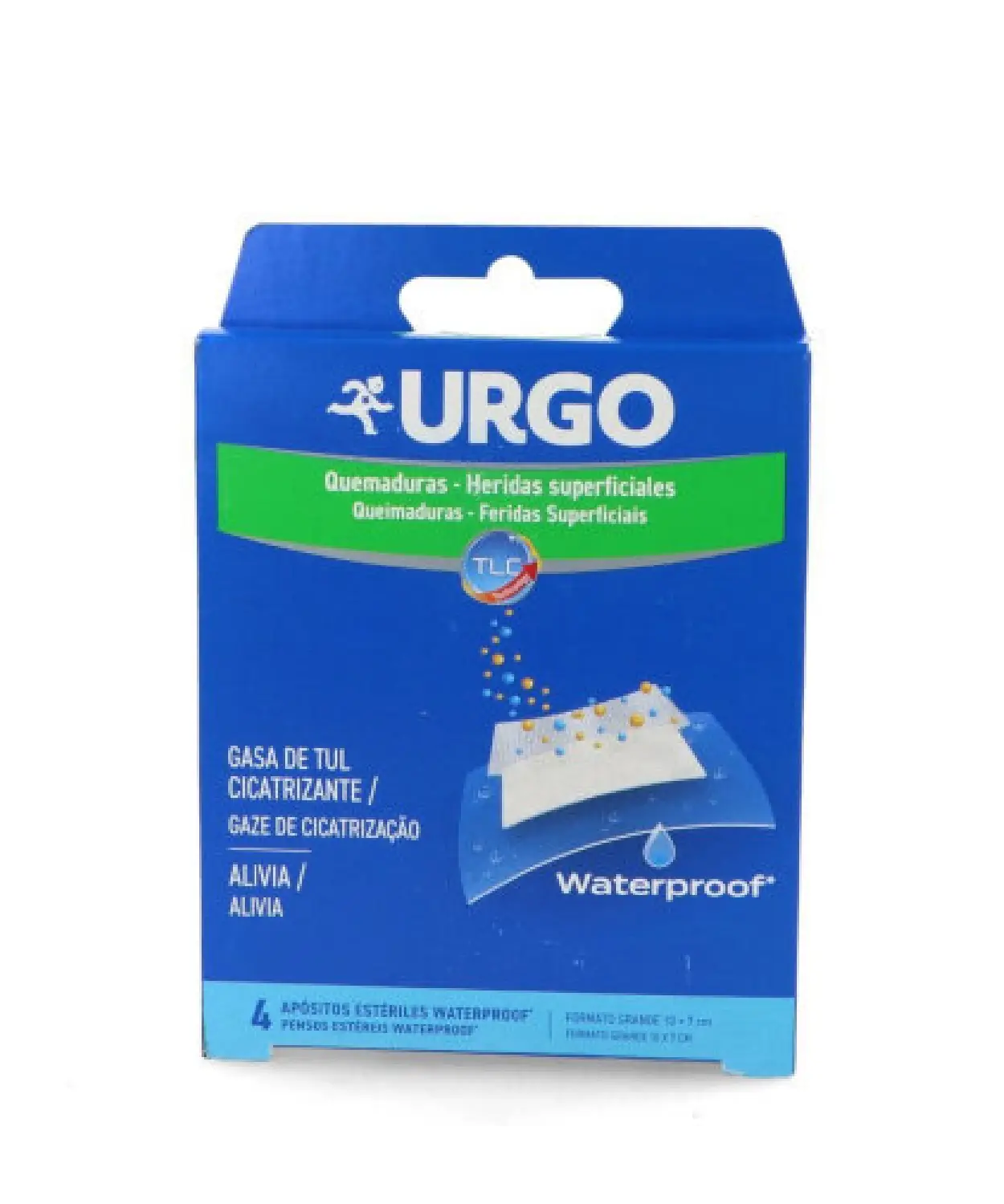 Los apósitos estériles  URGO Quemaduras y Heridas Superficiales están indicados para el tratamiento de quemaduras de 1er grado y 2º grado superficial (ampollas), así como heridas superficiales (abrasiones, pequeños cortes).