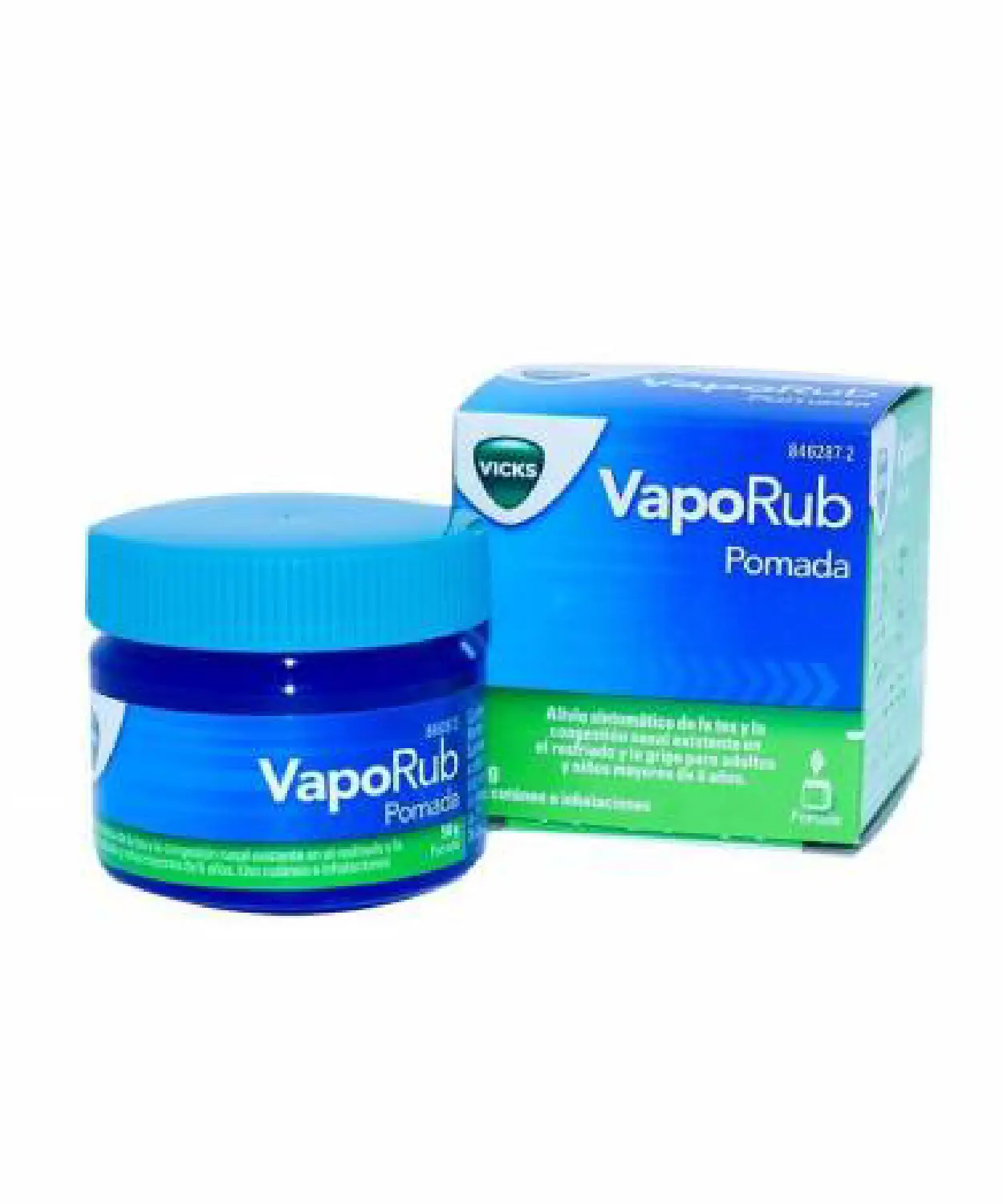Pomada con acción 2 en 1 para aliviar la tos y la congestión nasal durante un resfriado o gripe.